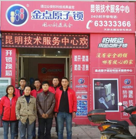2013年12月12日临近年关之际,也是盗窃案件频发的最高峰时候,金点原子锁发明人、创始人、广东金点原子制锁有限公司董事长雷先鸣先生,亲临金点原子锁昆明服务中心0871-63333366进行视察指导工作,要求服务中心每一位工作人员把安全防盗为己任,对社会防盗工作要有使命感,严格遵守金点原子锁安装技术要求和规范服务,共同努力维护社会安全防盗工作。金点原子锁昆明服务中心全体工作人员承诺,在年关前后自愿放弃自己的休息日,进入社区普及安全防盗知识工作,用专业防盗技术、安全便捷用心的服务好每一位金点原子锁的用户!
